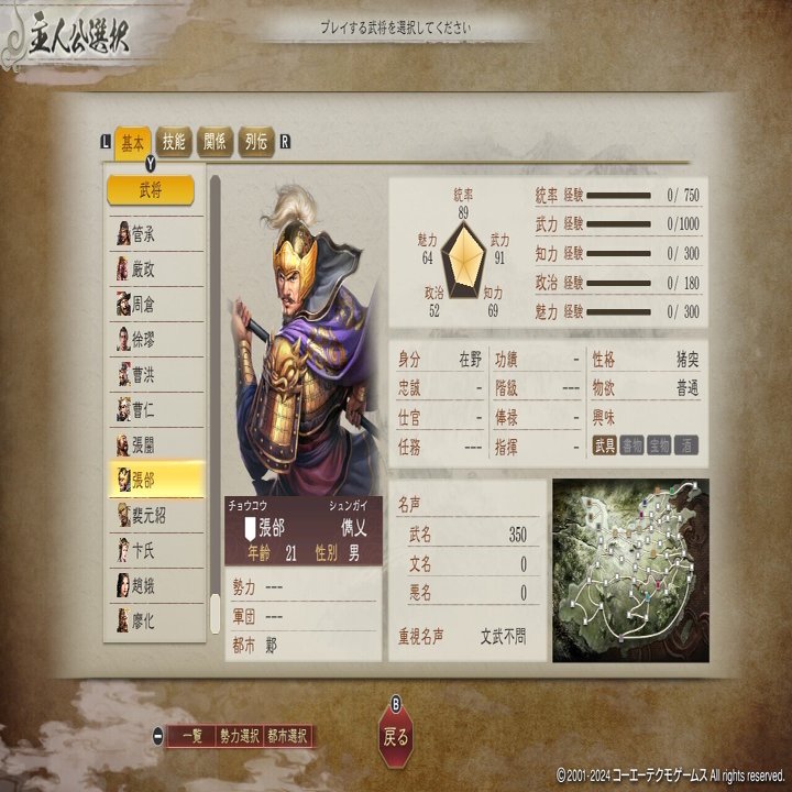 選んだ武将の武力または知力がそれなり(70程度)なのであれば、ステータスを鍛えるよりむしろ心得の方が大事です。