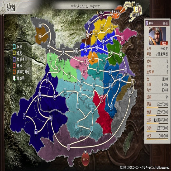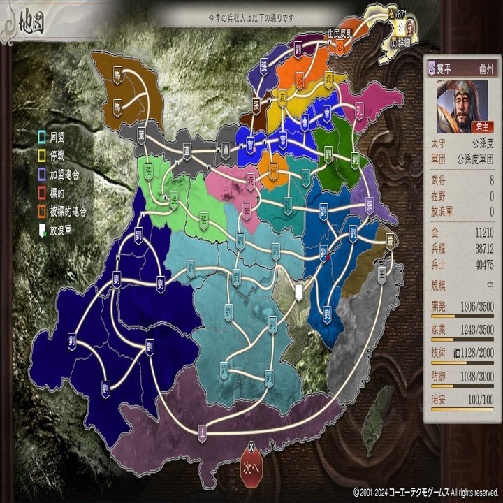 ・開墾などの内政実行時、連携が発生して通常より高い成果を出すことがある