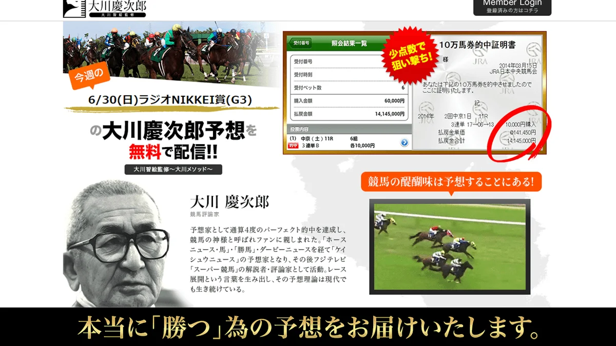 ▶ 大川慶次郎メソッド|無料で登録して今週の予想を見る
