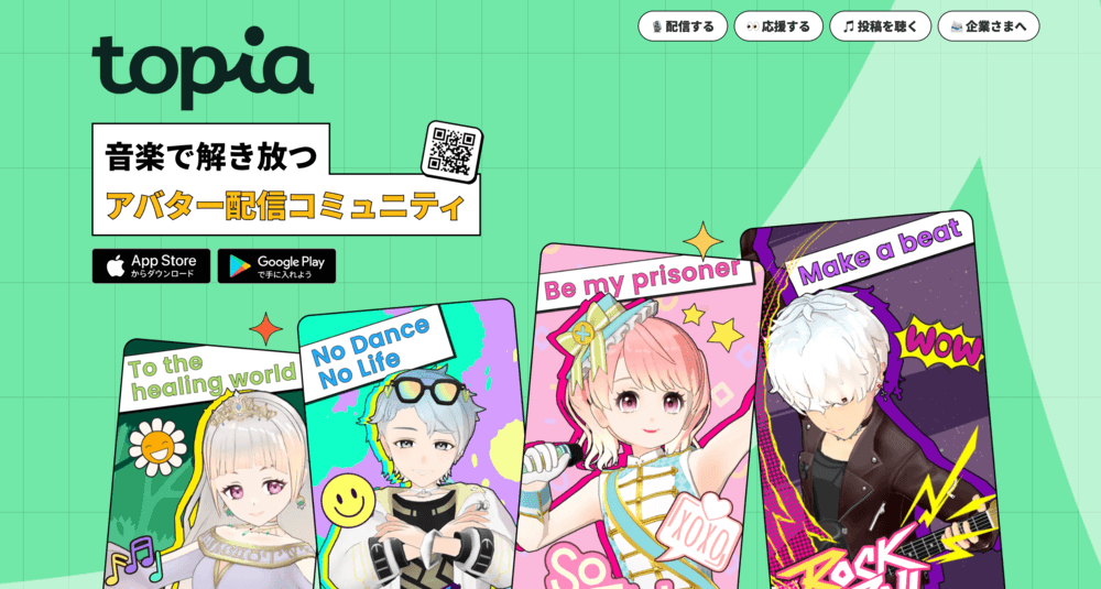 運営会社もtopiaのコンセプトを「カラオケ×バーチャル配信」としているため、カラオケ配信が好きな方にはおすすめのアプリと言えるでしょう。